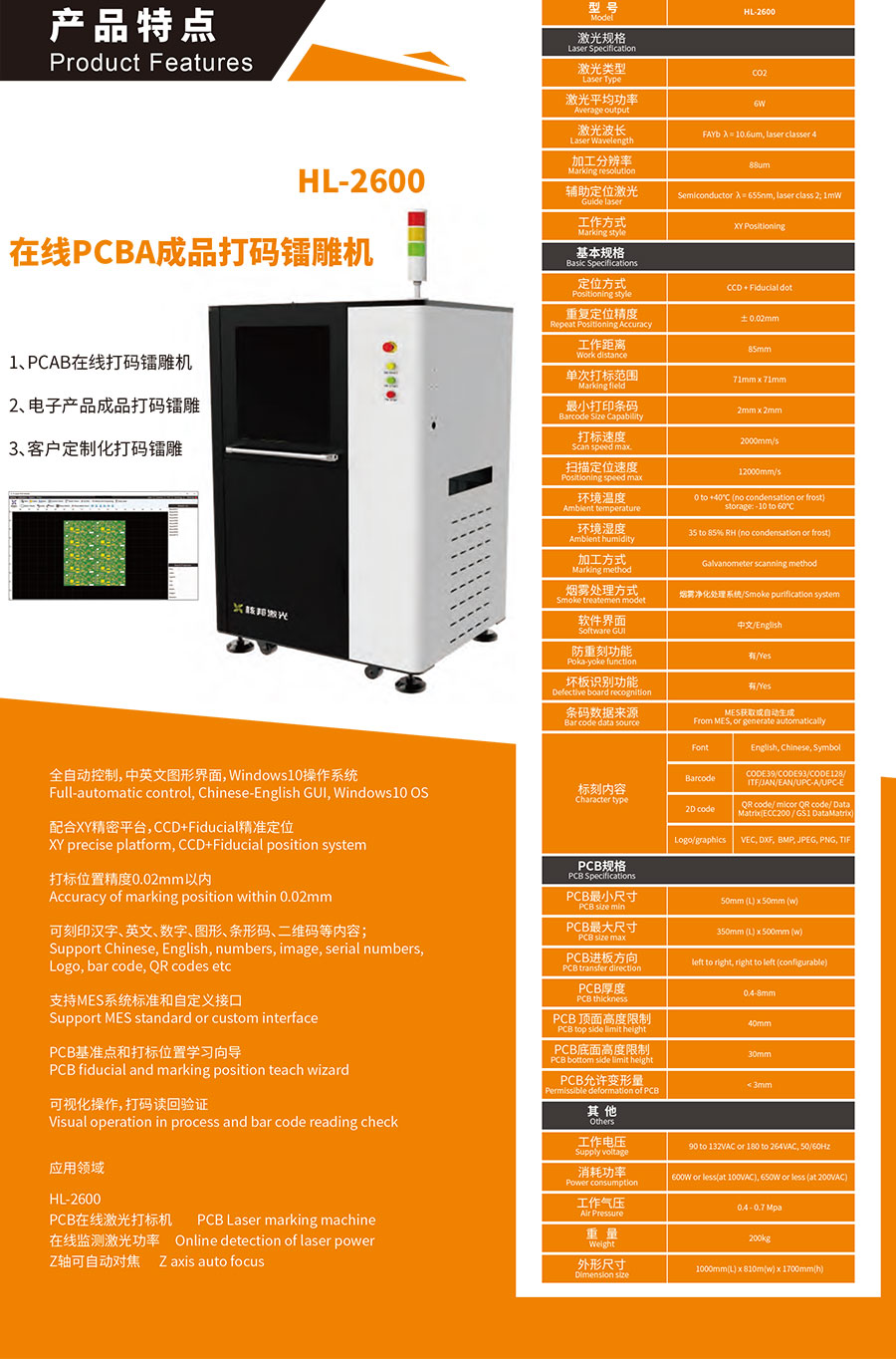1、PCAB在线打码镭雕机
