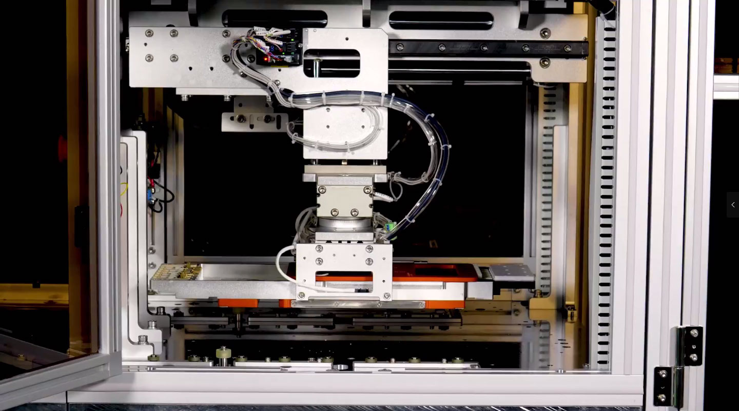 ◎一组电缆被放置于托盘中,机器将托盘自动放入夹具,夹具夹持电缆插头,馈入电信号进行功能测试;